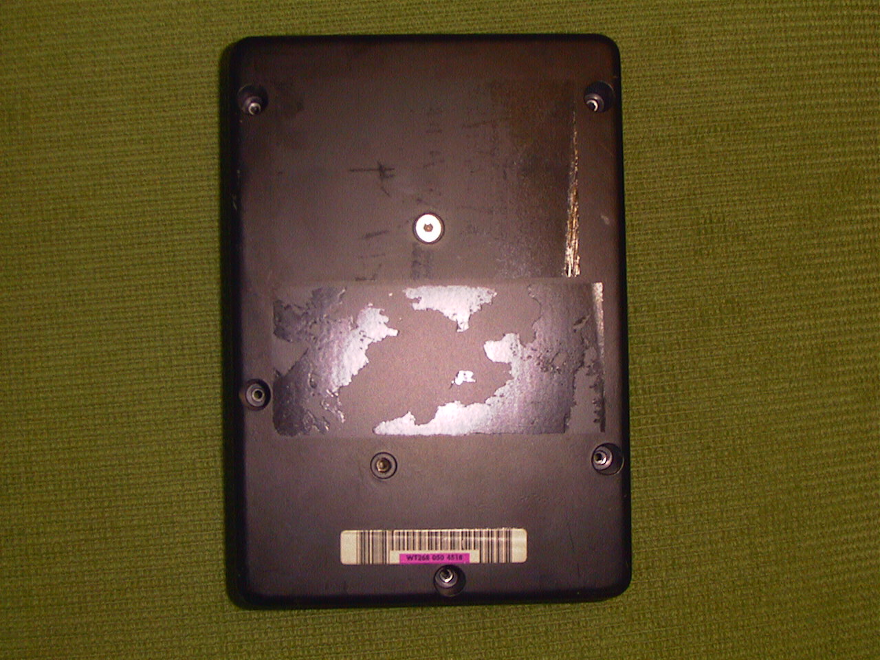 怪しい部分にあたりをつけます。どうもシールの下が怪しい。あった、ネジがありました。